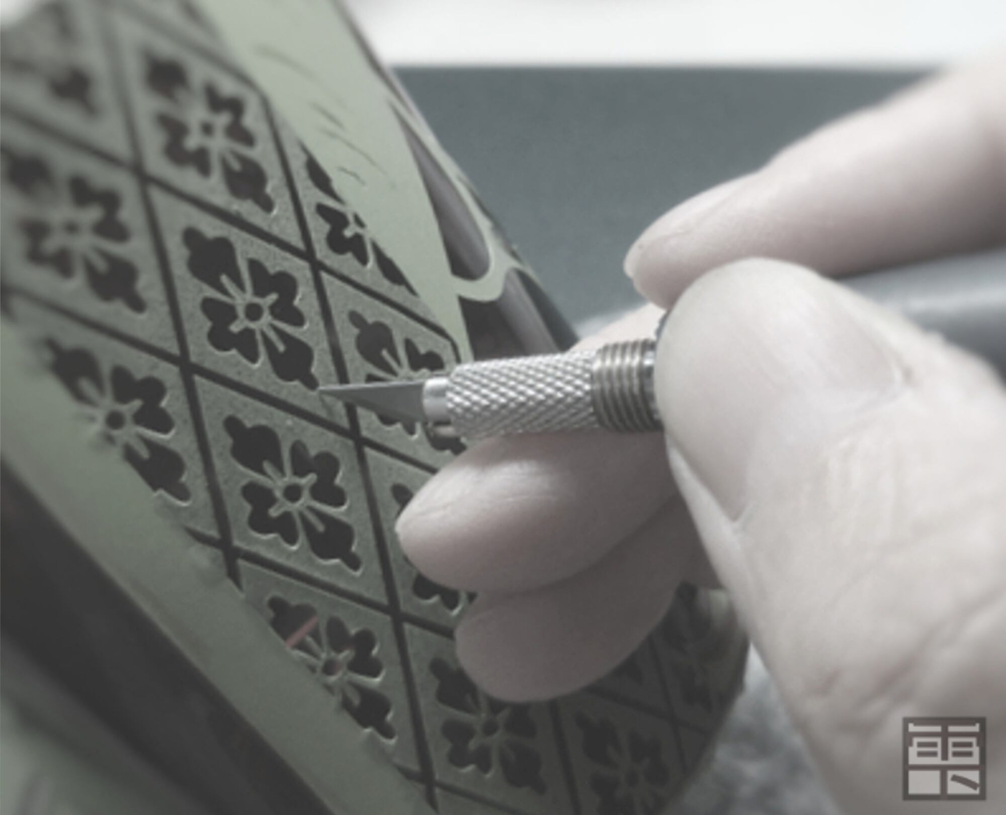 サンドブラストならではの技法であるグラデーションを随所に入れて高級感を出しています。